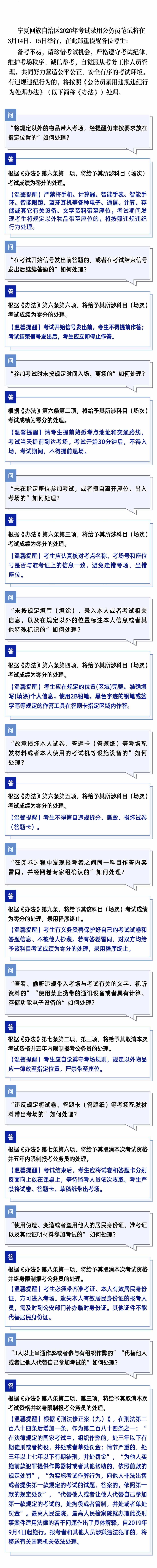 宁夏回族自治区2026年考试录用公务员笔试有关违规违纪行为处理温馨提醒