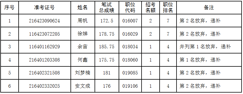 本公告发布后,因故放弃面试资格的,不再进行递补。